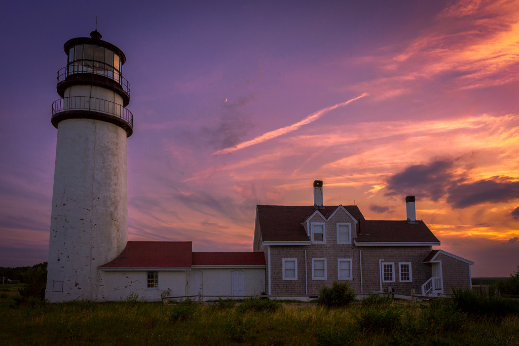 Fire in the Sky26 Jul, 2015 in architectural photography tagged Cape Cod / highland / lighthouse / truro by Rob Nitsch This is Highland Lighthouse in Truro Ma on Cape Cod during a particularly stunning sunset. If you look closely, you can see the moon made an appearance too!